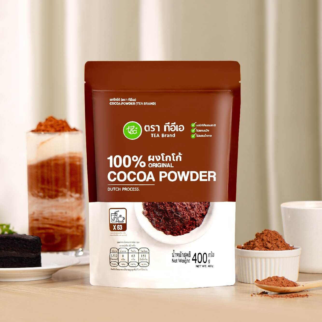 ความดาร์กของโกโก้ที่มีเอกลักษณ์ไม่เหมือนใครแถมให้กลิ่นหอมและเข้มข้น ต้องยกให้ผงโกโก้ตราทีอีเอของเรา