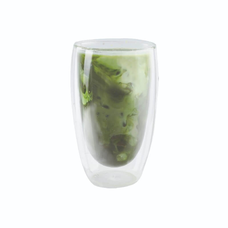 - Measure green tea powder, milk powder, and hot water into a glass.