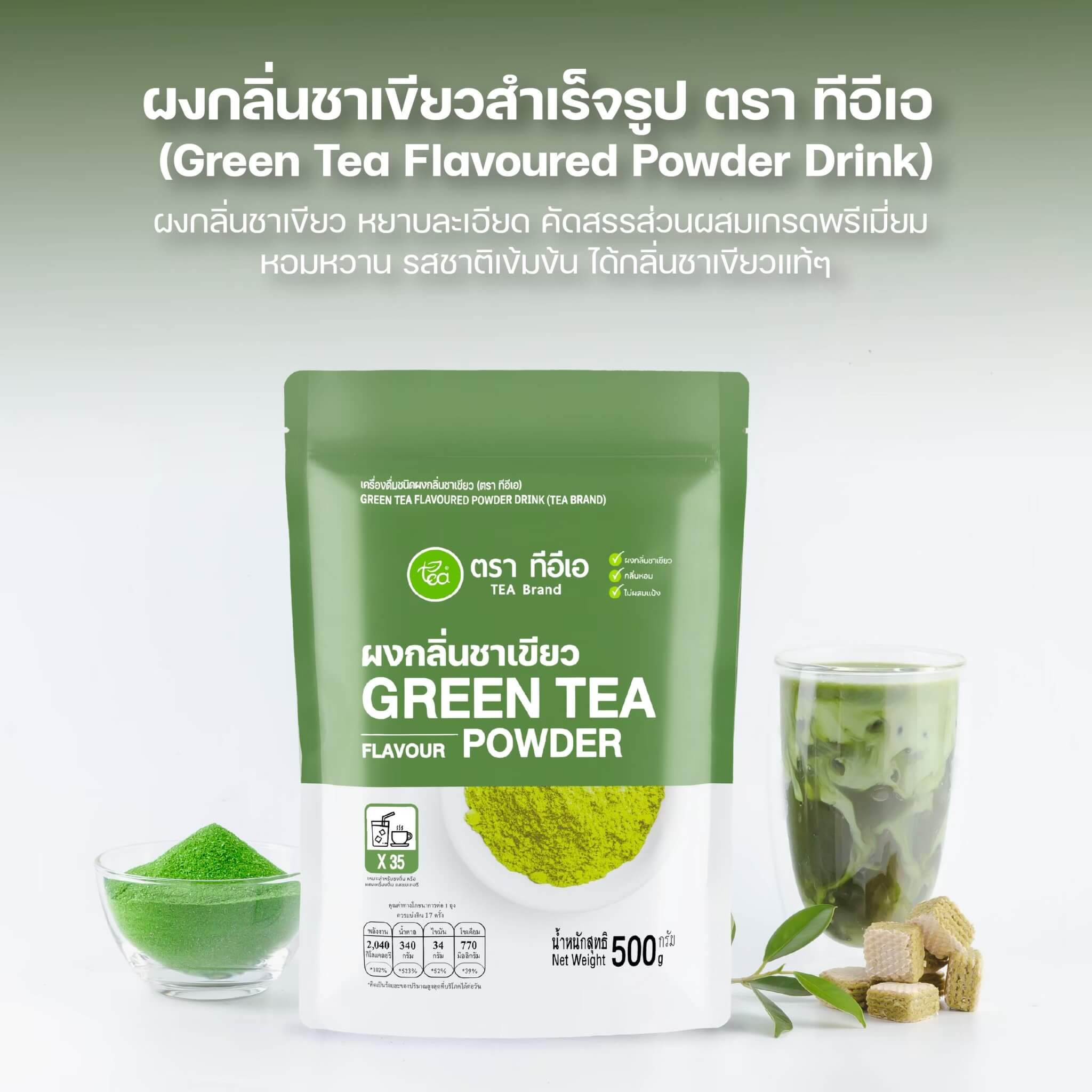 TEA Brand Instant Green Tea Powder is a ready-to-brew green tea powder made from selected premium-grade ingredients, delivering a rich aroma and smooth, delicious green tea flavor. It is suitable for use as an ingredient in various beverage and dessert menus.