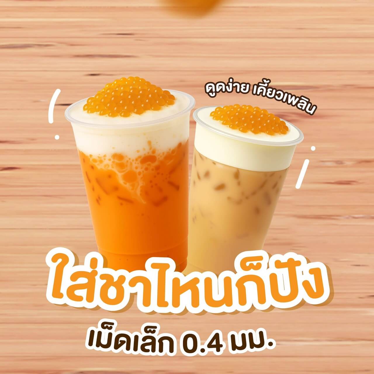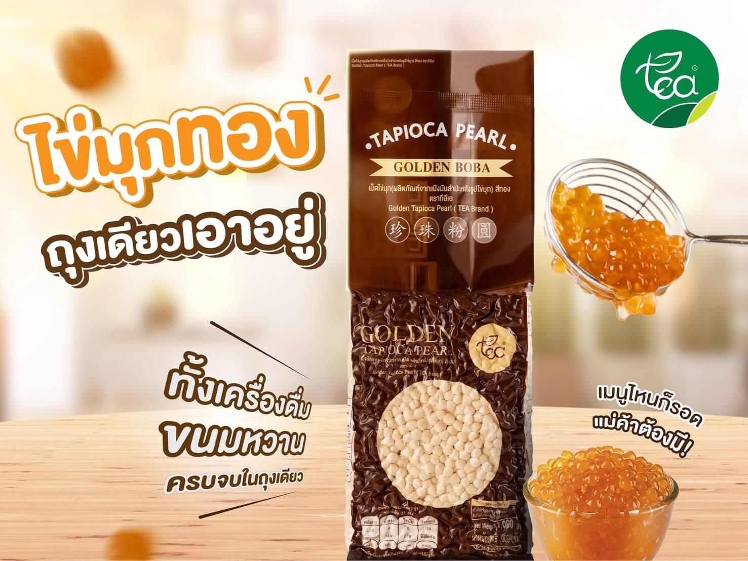 เพิ่มมูลค่าให้ทุกแก้วด้วย ไข่มุกสีทอง เม็ดไข่ปลา ขนาดพอดีคำ เคี้ยวหนึบ ต้มง่าย ไม่ติดหม้อ แม้ไม่มีประสบการณ์ก็ทำได้ หลังต้มเก็บได้นานถึง 6 ชั่วโมง และยังตอบโจทย์สายมังสวิรัติ อร่อยได้ทุกกลุ่มลูกค้า